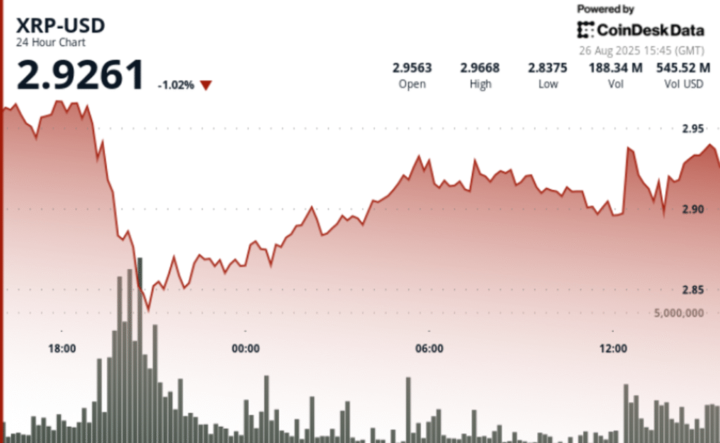 Dogecoin traded through heavy volatility over the August 24–26 window, swinging within a $0.013 range before consolidating near $0.21. A